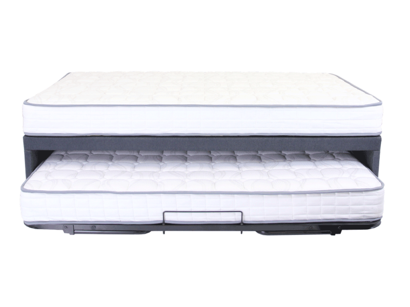 Add versatility and convenience to your bedroom, or guest room, with the Erin trundle bed. The underbed rolls out easily with spacious underbed drawers for convenient storage. Consisting of one king single bed and matching single trundle bed with mattresses, the Erin will help you get the most out of your bedroom's space, coming in handy for kids sleepovers, or unexpected visits from guests. It's a great way to maintain a neat bedroom space.
